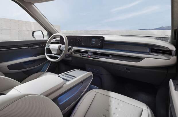 Пока раскрыты только некоторые детали новинки: фотографии экстерьера и интерьера, а также некоторые особенности оснащения. Так, EV9 получил выдвижные ручки дверей, сложную светодиодную оптику, трехэкранную цифровую панель и трансформируемый салон. Например, кресла второго ряда можно повернуть на 180 градусов для более удобного общения пассажиров между собой.