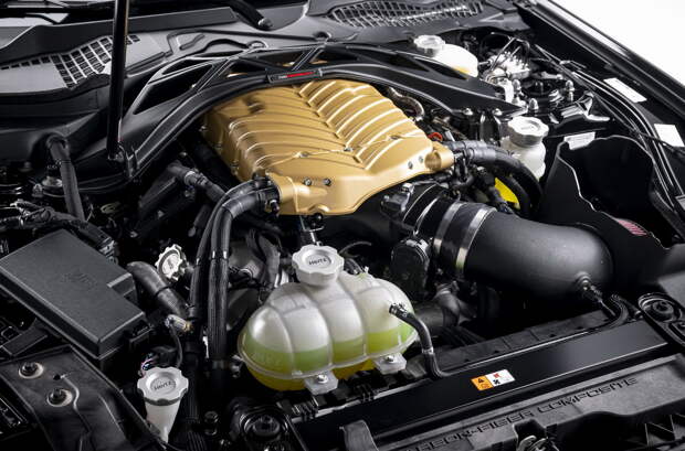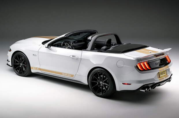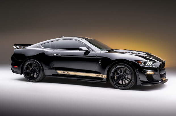 «Прокатные» Ford Mustang GT500-H — настоящий эксклюзив. Сделано всего 25 фастбэков с коваными колёсами, специальными шинами, тонированными стёклами, особым декором от Shelby American и карбоновым капотом. Главная доработка — форсированный с 770 до 912 лошадиных сил турбомотор V8 5.2 Predator.