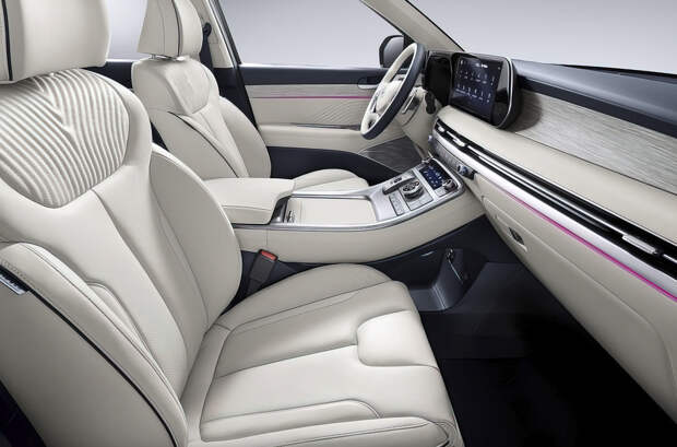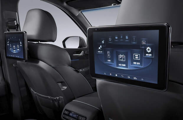 Салон изменился по той же схеме: пересмотрели расположение дефлекторов обдува, заменили рулевое колесо и увеличили диагональ экрана мультимедийной системы с 10,25 до 12,3 дюйма. Как и прежде, салон трехрядный и рассчитан на семь либо восемь человек, а в Корее предложат и VIP-версию с раздельными креслами на втором ряду и планшетами для пассажиров.