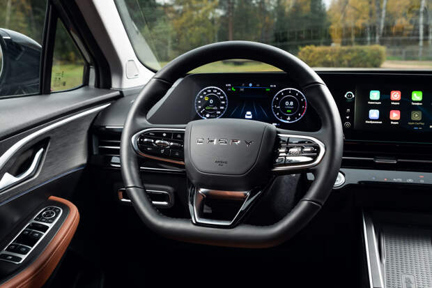 Спутать столь харизматичный автомобиль с другим сложно. А вот интерьер Omoda C5 самобытности лишён — здесь просто иначе расставлены все те же полочки, мониторы и сенсорные кнопки, что и у собратьев по платформе. Разве что архитектура передней панели (объединённые в едином блоке дисплеи и дефлектор климата во всю ширину) больше роднит Omoda со старшим Exeed; а материалы ближе к младшему Chery. В салоне использован довольно бюджетный пластик, а уголки дверей в районе стоек вообще забыли прикрыть накладкой — оттуда выглядывают сварные швы.