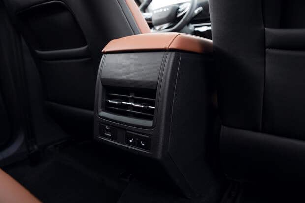 Вокруг селектора скомпонованы несколько механических кнопок, среди которых и аварийка. Но находится она в слепой зоне, поэтому проморгать «спасибо» на ходу затруднительно. Рядом крутилка громкости и пара сенсорных кнопок — словно их было некуда больше пристроить. Климат по классике сенсорный, и пользоваться им неприятно. И даже с учётом этого, организация передней части салона и общий уют в Omoda С5 лучше, чем в более дорогом Exeed LX. Сзади тоже неплохо, но ниспадающая крыша вместе со сплошными, без окошек толстыми стойками крыши крадут простор и производят небольшой клаустрофобный эффект.