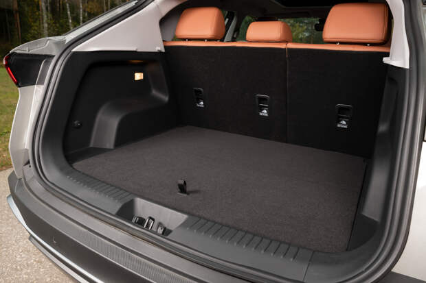 Интересно исполнена светотехника. Спереди двухэтажная: с дневными ходовыми огнями, напоминающими вольвовский «молот Тора», и блоками основной оптики ниже. Ближний светит великолепно: широко, далеко, ярко и равномерно. На этом фоне даже несколько меркнет дальний — прибавка в освещённости слабее, чем ожидаешь. Сзади рисунок фонарей вообще смотрится, будто это дорогущие органические светодиоды Audi — под обтекателями светится множество объёмных пластинок габаритных огней. Круто!