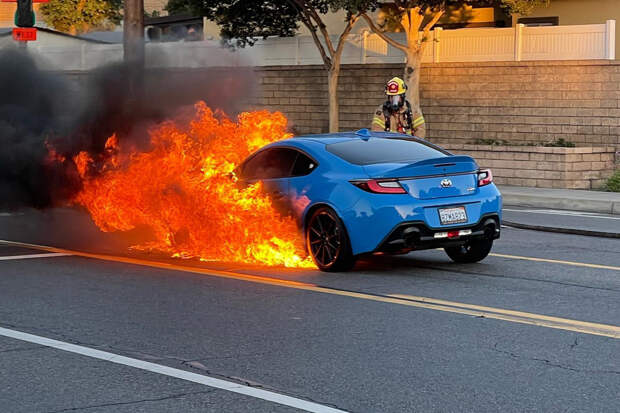 Инцидент со сгоревшим спорткаром произошел в Южной Калифорнии. Водитель автомобиля опубликовал в соцсетях видео и фотографии с места пожара, и рассказал, в каком сервисном центре чинил свой GR86. По словам мужчины, спорткар загорелся «прямо у него перед глазами» в тот момент, когда он сворачивал с трассы. О причине возгорания он не сообщил, зато заявил о намерении засудить сервис.