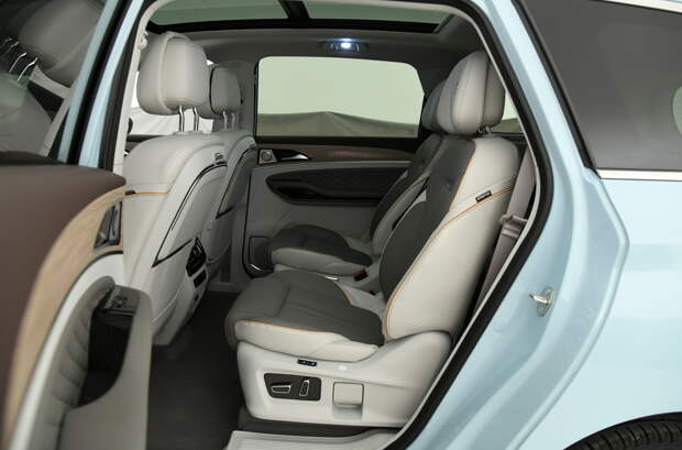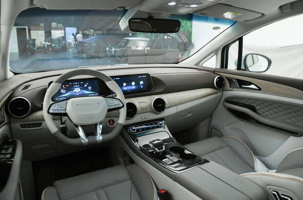 У топ-версии отделка кожей Nappa, составная панорамная крыша, мультиконтурные передние и задние кресла с подогревом, вентиляцией, массажём и памятью, восемь подушек безопасности, адаптивный круиз-контроль с функцией распознавания пешеходов и автопарковщик.