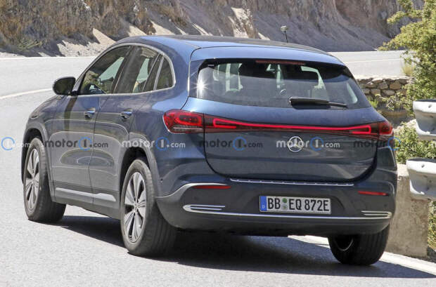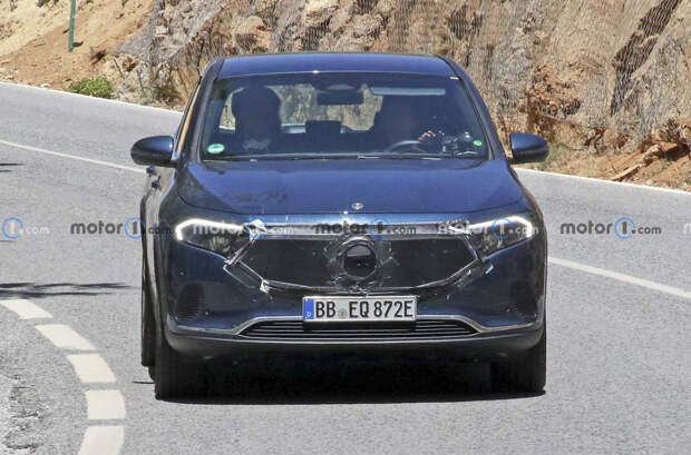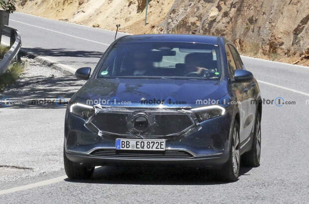 У прототипа на шпионских снимках лишь частично замаскирована передняя часть — черной пленкой заклеили заглушку, которая у электрокаров установлена вместо радиаторной решетки. У нынешнего EQA по верхней части панели проходит светодиодная полоса.