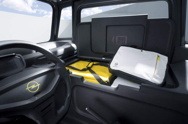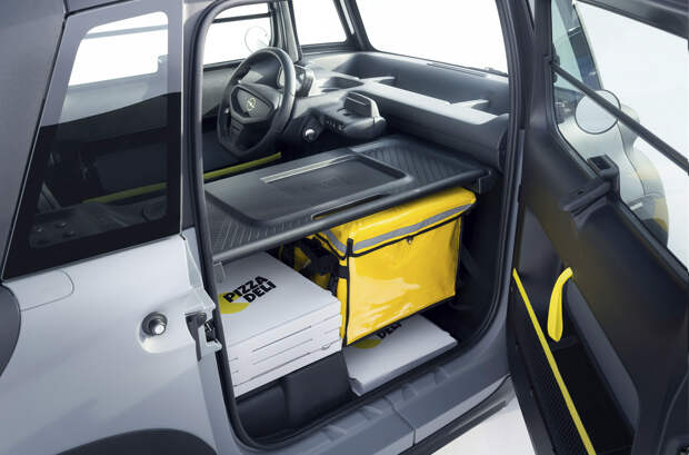 Rocks-e Cargo идеально подойдет для доставки пиццы, лекарств и малогабаритных посылок по городу, считают в Opel. Вместо пассажирского кресла в салоне оборудован грузовой отсек, который отделен от водительского места перегородкой. В салоне предусмотрены различные углубления, кармашки, сетки и ремни для фиксации багажа.