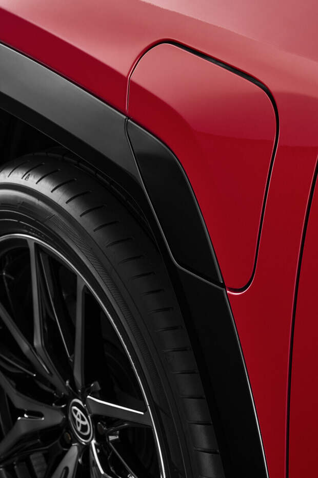 Внешне новый RAV4, безусловно, узнаваем, но воспринимается иначе, чем предшественник. Дизайнеры пошли по пути придания облику большей строгости и даже некоторой брутальности: появились чёткие горизонтальные линии, рубленые грани и вертикальная тема в оформлении передней части.