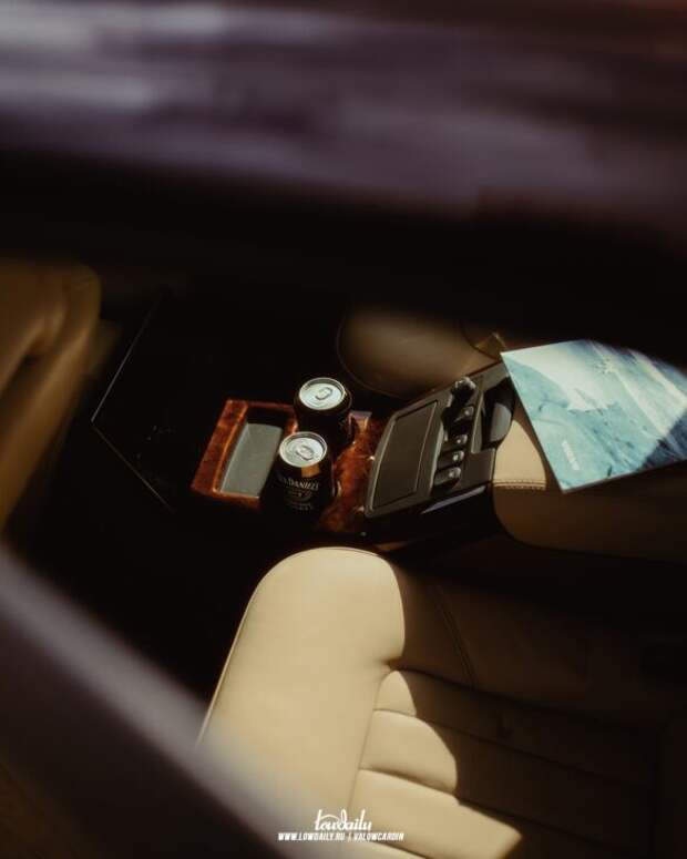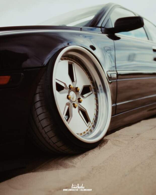 Задачи построить проект, который за 3 километра кричал бы о себе не было. Снаружи всё просто, но в мелочах кастома заложено множество. Арки, которые выглядят как заводские, на самом деле переварены. В них с трудом влезали Work R20, поэтому пришлось спилить и изготовить новые. Спереди коррекции потребовали усилители крыла и элементы подвески. Как итог — в нижнем положении машина лежит болтами подрамника на земле. Накладки на пороги самодельные, спаянные из 2-х заводских. Накладка на задний бампер заботливо срезана с бампера S80 в новом кузове. Машина перекрашена в цвет Porsche.