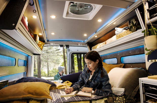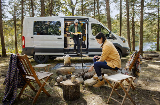 В списке оборудования – мультимедийный комплекс Sync 4 с 12-дюймовым экраном, смарт-ключ, несколько розеток на 110 и 12 вольт, а также USB-разъемы. Из вспомогательных систем заявлены адаптивный круиз-контроль и мониторинг слепых зон. В салоне имеются крепления для походной мебели – спального места, полок и различных ниш для хранения. А с опциональным пакетом Heavy-Duty Trailer Package такой Transit Trail может буксировать прицеп массой до трех тонн.