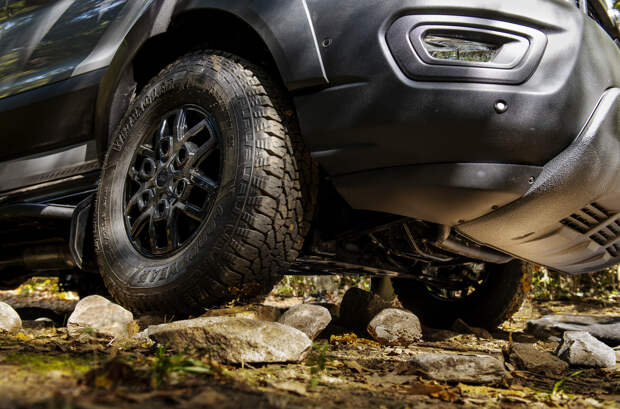 У Transit Trail увеличенный почти на 90 миллиметров дорожный просвет и расширенная на 70 миллиметров колея, если сравнивать его со стандартным Транзитом. Он оснащен 16-дюймовыми черными дисками и обут в 30,5-дюймовые внедорожные шины Goodyear Wrangler Workhorse. Из внешних отличий – иное оформление передней части, защитные пластиковые накладки «по кругу» и дополнительные подножки.