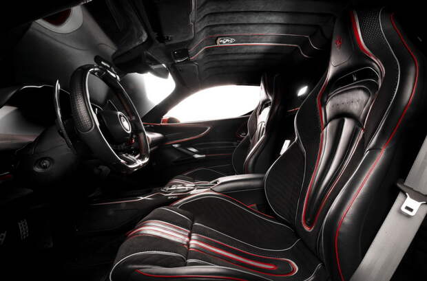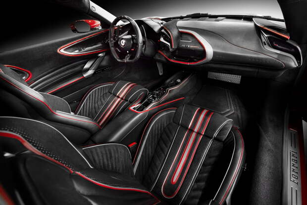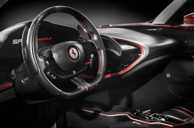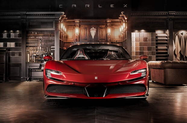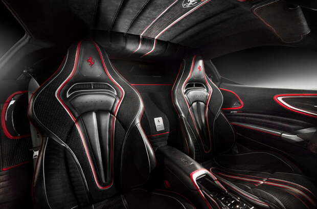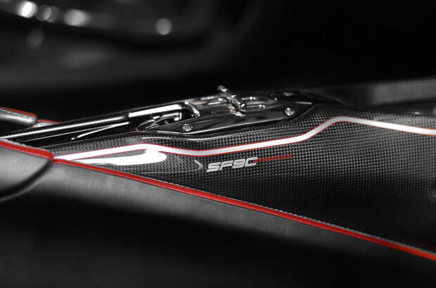 Переосмыслены дверные карты, не оставили без внимания даже нишу позади сидений.Польское тюнинг-ателье Carlex Design полностью перешило алькантарой салон Ferrari SF90 Stradale. Специалисты использовали чёрную, красную и серебристую ткань, причём в Carlex Design постарались сохранить наследие Ferrari — тиснение с «гарцующим жеребцом» осталось на спинках кресел и подлокотнике, а на крыше вышит герб итальянской компании. Переосмыслены дверные карты, не оставили без внимания даже нишу позади сидений.
