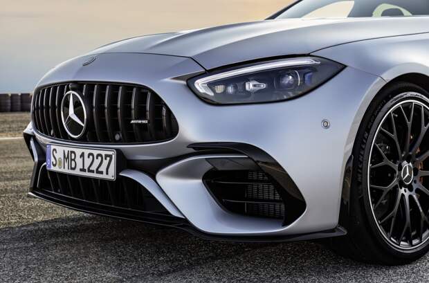 Mercedes-AMG C 63 S 4Matic+ длиннее и шире обычного C-Class. И там, и там по несколько сантиметров, но из-за них пропорции автомобиля должны восприниматься несколько иначе. Колеса — 19-дюймовые (20 дюймов — опция), с разноширокими шинами. На капоте сделана вентиляционная прорезь, а за решеткой радиатора и сеткой бампера приютились две электронноуправляемые воздушные заслонки. Шильдик E Performance — недвусмысленный намек на гибридную силовую установку.