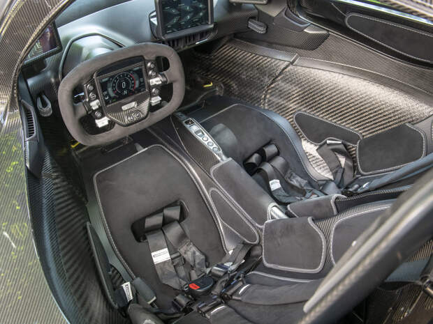 Интерьер отделан чёрной алькантарой с прострочкой серебристой нитью, а также неокрашенным углепластиком. Заднеприводный гиперкар оснащается гибридной силовой установкой на базе 6,5-литрового V12 мощностью 1146 лошадиных сил, разработанной компанией Cosworth специально для этого проекта.