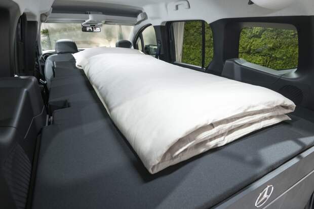 За счёт трансформации салона можно получить спальное место с толстым 10-сантиметровым матрасом для двух человек, которое складывается и компактно располагается в багажнике. В стандартную комплектацию вошли москитная сетка на окна и специальные занавески для стёкол, а также кармашки для мелочей на задние стойки. «Зелёное» завтра Mercedes-Benz: семь автомобилей, заглянувших в будущее