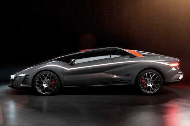 К своему столетнему юбилею компания подготовила концепт Bertone Nuccio (Нуччио – это прозвище сына основателя ателье). На первых скетчах черно-оранжевый автомобиль красовался единой линией капота, скрывающего 4,3-литровый V8 мощностью 480 лошадиных сил, лобового стекла, крыши и багажника. По бокам линию обрамляли «ушки» завихрений. Продолжала тему неразрывности передняя и задняя оптика.