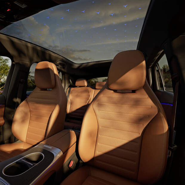 Салон GLC L — это почти S-Class в мире среднеразмерных кроссоверов. В арсенале есть пневмоподвеска Airmatic, задние колёса с углом поворота 4,5 градуса и гидравлические сайлентблоки, настроенные специально для китайских дорог. На центральном тоннеле — блок управления климатом для задних пассажиров.
