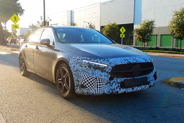 Этот снимок сделал и прислал в редакцию Авторевю наш внештатный автор Дмитрий Шульпин. Обновленный Mercedes-Benz A-класса проходит испытания в Калифорнии. Нынешний седан поколения W177 стал первым A-классом на рынке США (хэтчбек здесь по-прежнему не представлен), поэтому и тесты закамуфлированных машин компания проводит в том числе в Штатах.