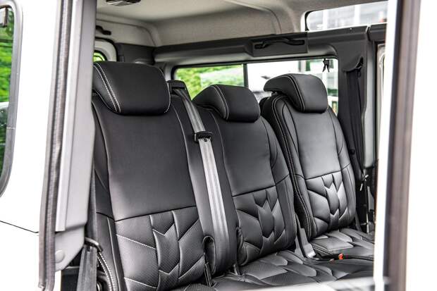 Предусмотрен и фирменный чехол на запасное колесо. Интерьер изменился за счёт нового руля, а также за счёт полной замены штатной отделки более дорогой и качественной обивкой из чёрной кожи.