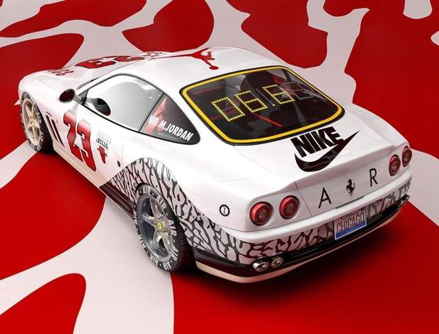 Машину Майкла Джордана посвятили кроссовкам Nike, которые в своё время были созданы в честь самого Майкла Джордана и прославились благодаря культовой фотографии.Итальянское тюнинг-ателье Garage Italia Customs, которое принадлежит эпатажному Лапо Элканну, младшему внуку в прошлом главного акционера «Фиата» Джанни Аньелли, и специализируется на создании уникальных автомобилей, представило программу доработки купе Ferrari 550 Maranello одного из лучших баскетболистов в истории. Машину Майкла Джордана посвятили кроссовкам Nike, которые в своё время были созданы в честь самого Майкла Джордана и прославились благодаря культовой фотографии.