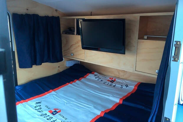 Правда, кей-кары должны еще и соответствовать очень строгим стандартам по ширине, чтобы легко перемещаться по тесным японским улочкам, и это, конечно, сказалось и на ширине двуспальной кровати: всего 1.25 метра. Для сравнения одинарный спальник в Камазе с современной кабиной К5 имеет ширину 750 мм.