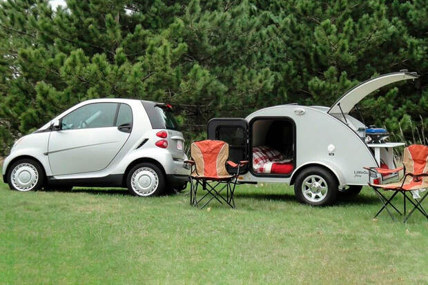 Очень кстати и австралийская фирма Teardrop Camper Company производит жилой 330-килограммовый жилой прицеп-автодом, чтобы его можно было перевозить за автомобилем smart или даже мотоциклом-трайком.