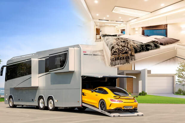 Когда-то мы показывали вам не то что автодом, а настоящий замок немецкой фирмы VARIOmobil, на борту которого располагалась не только гостиная, секретер с сервизом и спальня, но и гараж для легкового автомобиля. Приезжаешь на стоянку и можешь кататься по окрестностям на легковой машине.