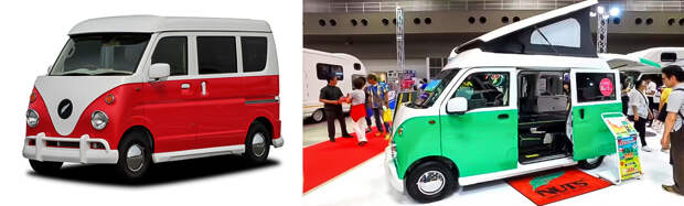 Еще одной популярной основой для мини-кемперов являются японские кей-кары — гонконгские однушки в мире автомобилей. Они настолько невелики (небольшие размеры позволяют получить в Японии налоговые льготы), что не смогли серьезно закрепится нигде, кроме внутреннего рынка, зато в Стране восходящего солнца их массово переделывают даже в автодома.