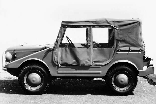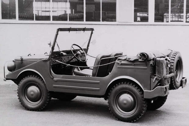Внедорожник забытой немецкой марки DKW даже внешне совсем не похож на традиционный армейский «джип». Странные пропорции объясняются особенностями компоновки... которая очень напоминает Audi — c продольным расположением силового агрегата, двигателем в переднем свесе и полным приводом.