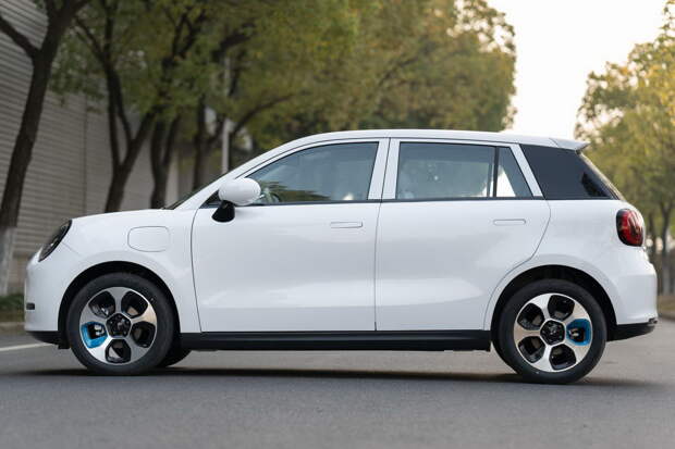Минпромторг Китайской Народной Республики засветил хэтчбек EV3 — четырёхметровый автомобиль с бесхитростной техникой. Стремление подражать новинкам баварского концерна очевидно: помимо схожих с MINI пропорций и габаритов, у «тройки» характерные овальные светодиодные фары, скруглённые фонари, а также пятилепестковые диски с синей вставкой.