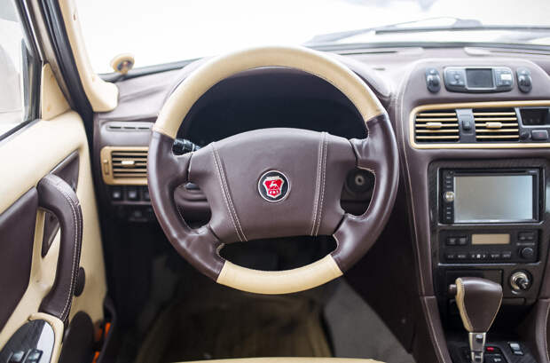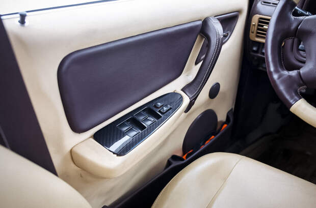 Салон выполнен из двухцветной кожи. В оснащение универсала входит обогрев всех сидений и рулевого колеса, система климат-контроля, цифровая приборная панель, а также камера заднего вида, автозапуск двигателя и электропривод передних кресел. От заводской версии в машине остались лишь дверные карты.