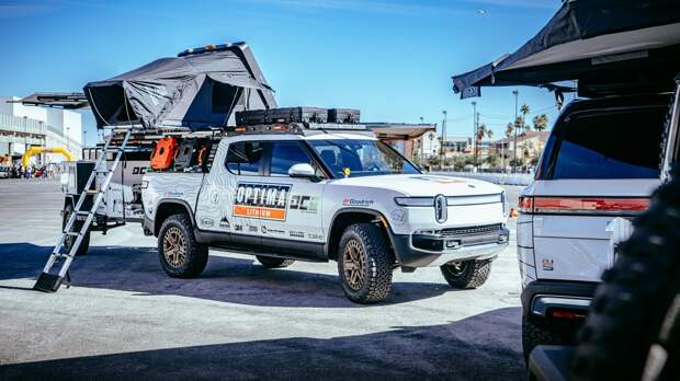 В Лас-Вегасе в рамках тюнинг-шоу SEMA состоялась премьера двух новых исполнений электромобилей Rivian — фирмой Optima Batteries для вылазок на бездорожье были подготовлены серийный образец электрического пикапа Rivian R1T и серийный же электрический внедорожник Rivian R1S. Обе модели, получившие собственные имена, созданы как части одного каравана и имеют свои чётко определенные задачи во время путешествий по пересечённой местности.