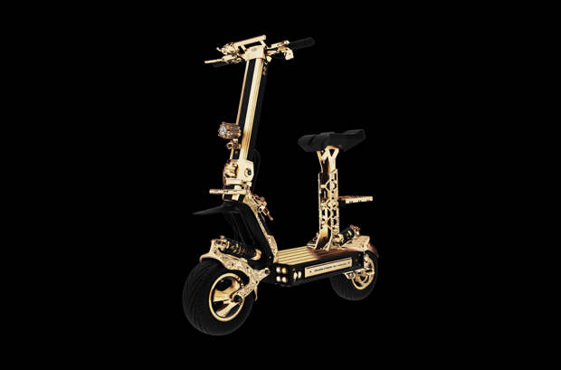Компания Caviar, которая сама себя называет «люксовым ателье по кастомизации», представила новый продукт — ультрароскошный электросамокат Thunderball («шаровая молния»). Новинка удивляет не только ценой в 2,9 миллиона рублей, что сравнимо со стоимостью кроссовера Volkswagen Taos, но и внешним видом: некоторые детали выполнены из чистого золота.