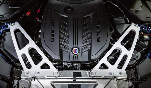 За основу взят лифтбек BMW M440i Gran Coupe xDrive, но вместо штатного мотора B58 с одним двухпоточным турбокомпрессором (374 л.с., 500 Нм) установлена доработанная версия старого двигателя N54 с двумя раздельными нагнетателями. Инженеры Альпины хранят верность этому агрегату, потому что он более короткоходный, легче набирает обороты и при прочих равных лучше тянет на низах.
