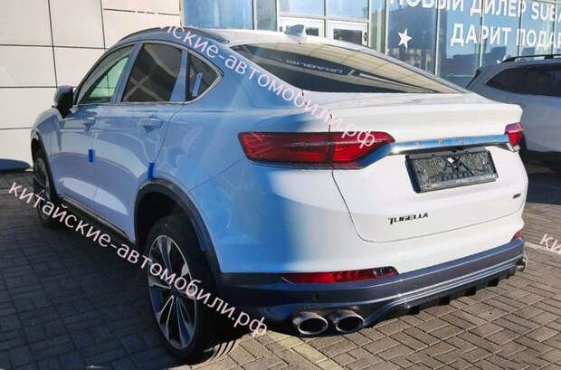 В Челябинске сфотографировали кросс-купе в белом цвете, и это тестовый автомобиль. Обновленную Tugella можно узнать по иному рисунку радиаторной решетки, серым порогам и аркам, а также сдвоенным патрубкам выхлопной системы. У дилера такой автомобиль стоит 4,2 миллиона рублей без скидок и дополнительного оборудования. Предзаказ уже открыт, однако, по информации «Китайских автомобиле», моделью пока еще никто не интересовался.
