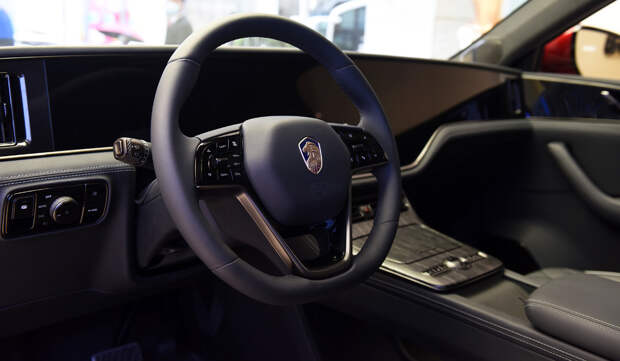 Как и многие другие китайские стартапы, Hengchi рассчитывает привлечь покупателей передовой электроникой. Поэтому на плоской передней панели под единым стеклом расположено сразу три экрана: приборный на 10,25 дюйма, центральный на 14,6 дюйма и вспомогательный правый (перед пассажиром) диагональю 10,25 дюйма.