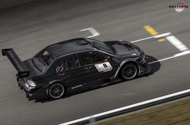 У выставленного на продажу Lancer Evolution VIII карбоновый аэродинамический обвес (передний и задний сплиттеры, антикрыло и накладки на задние арки), из карбона также выполнены капот, крыша, двери и даже корпуса наружных зеркал. Диски Rays Volk Racing «обуты» в слики Michelin (также упоминаются слики Hankook). В салоне установлен каркас безопасности и спортивное водительское кресло Bride с шеститочнечными ремнями безопасности. В списке оснащения указаны тормоза Brembo, напольный педальный узел AP racing, съемный спортивный руль и система пожаротушения.