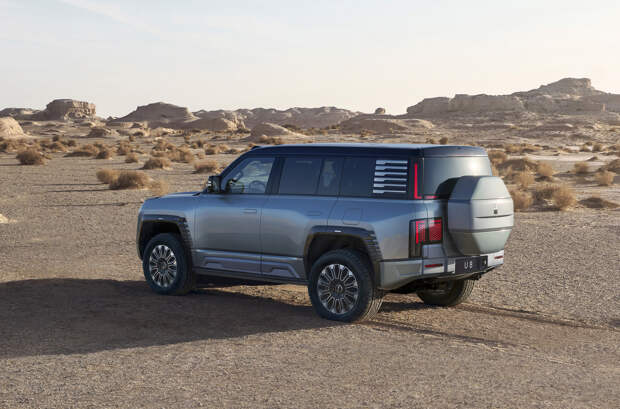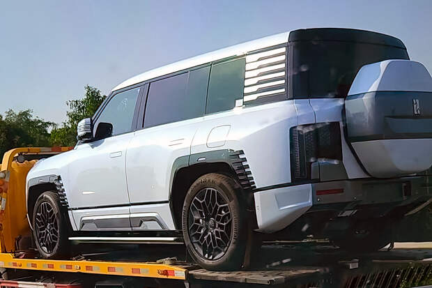 Yangwang U8 значительно крупнее Toyota Land Cruiser 300, но при этом до габаритов полноразмерного Cadillac Escalade немного недотягивает. На свежих шпионских фотографиях внедорожник перевозят на автовозе, причем без камуфляжа: можно рассмотреть корму автомобиля с запаской, вынесенной на пятую дверь на манер Defender.