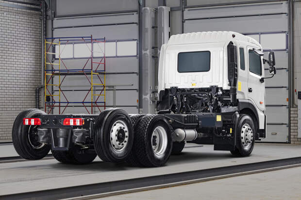 Правда, на фоне ужесточения правил перевозок кдиенты могли загружать машины только на 70% от их максимальной грузоподъемности — около 7 вместо 10 тонн.Также заказчик может может попросить, чтобы машину оборудовали поворотной осью. Эта версия шасси разработана для коммунальной сферы и предназначена для застройки под мусоровозы и другую спецтехнику.