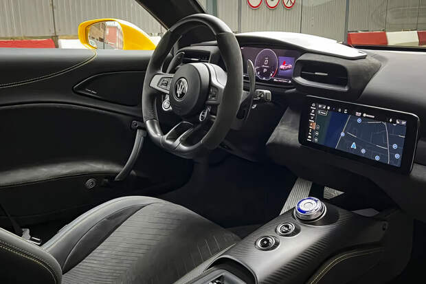 Московский дилер предлагает купить ярко-желтый Maserati MC20 с крышей и колесными дисками черного цвета. Двухместный салон, отделанный темной алькантарой, дополнен множеством карбоновых вставок. Продавец из Находки готов привезти серый супекар с черно-коричневым интерьером.