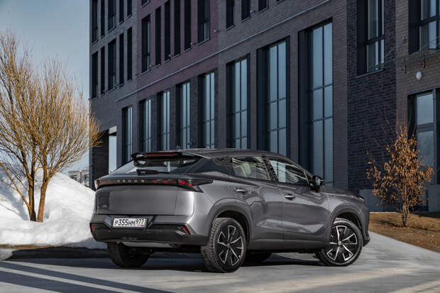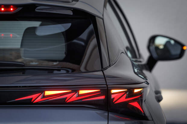 Задняя часть удалась однозначно. Зигзагообразные фонари — прямая отсылка к старшей модели, номерной знак переехал на бампер, сделав корму визуально чище. Обвес из некрашеного пластика по нижней части кузова сохранили — в наших условиях решение практичное: заменить пластиковую накладку дешевле, чем красить крыло.