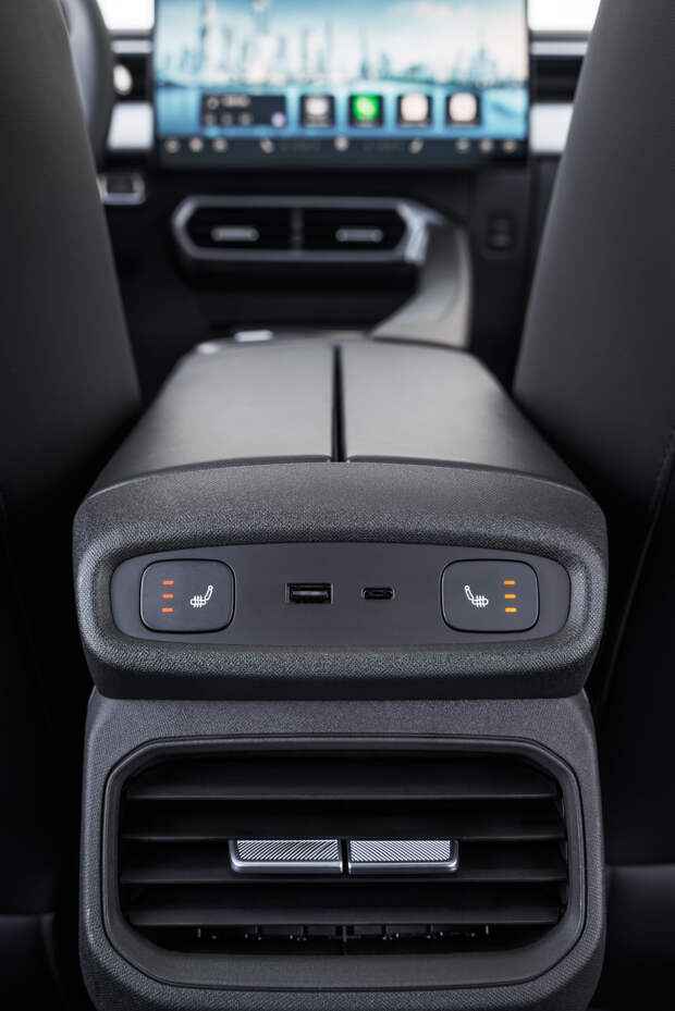 Есть беспроводные Apple CarPlay и Android Auto. Беспроводная зарядка на 50 Вт (с комплектации «Драйв») — мощная, телефон с 20 до 80% заряжается за 40 минут, предусмотрено активное охлаждение.