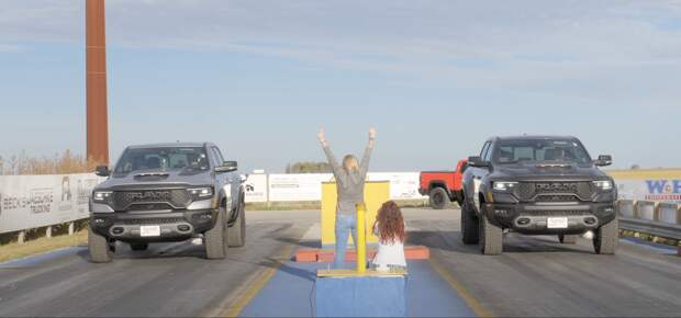 Более того, пикапов Ram TRX оказалось два — стандартный и доработанный.Авторы видеоблога The Fast Lane Truck, как ясно из названия, питают особую страсть к внедорожникам и пикапам. Для своего очередного сравнения на YouTube-канале они выбрали две модели, которые могут считаться самыми мощными в своем классе на рынке. В дуэли на прямой сошлись электрический пикап Ford F-150 Lightning, в соперники которому достался автомобиль с классическим двигателем внутреннего сгорания — Ram TRX. Более того, пикапов Ram TRX оказалось два — стандартный и доработанный.