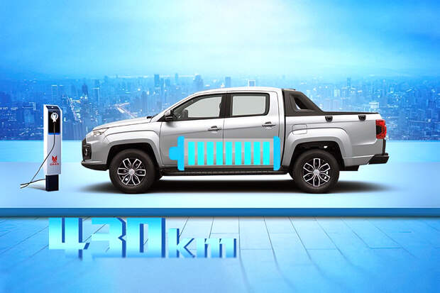 Таинственной моделью оказался китайский среднеразмерный пикап JMC Vigus. Электрокар оборудован силовым агрегатом на задней оси, отдача которого составляет 163 лошадиные силы. Аккумулятор емкостью 60 киловатт-часа позволяет электрокару проезжать без подзарядки до 430 километров. Кроме того, для машины доступна функция быстрой зарядки, которая позволяет полностью «заправить» батареи примерно за час.