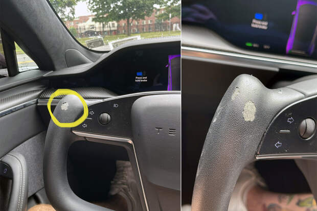 Один из пользователей приобрел Tesla Model S в «дальнобойной» и не самой дешевой модификации Long Range. Спустя всего 24 тысячи миль (38,6 тысячи километров) пробега он обнаружил, что с одной из ручек руля электрокара слез крупный кусок отделки. Об аналогичной проблеме рассказали хозяин топовой Model S Plaid, пробег которой вдвое меньше, и еще один клиент, успевший наездить на своей «Тесле» только четыре тысячи миль (6,4 тысячи километров).