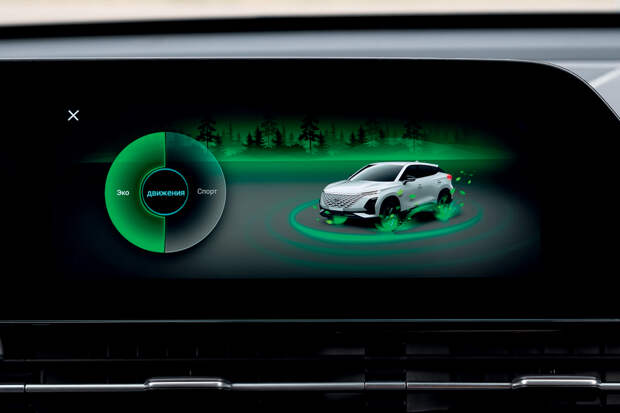 Если искусственный руль вас не смущает, то вряд ли вы будете расстроены управляемостью Омоды в целом. Едет это шасси с полузависимой задней подвеской (опять же как на Chery Tiggo 4 Pro) без изысков, но и без особых проблем. Во всяком случае, на зимних шинах Pirelli Ice Zero FR размерности 215/55 R18. Попытки прощупать поведение Омоды в скольжениях грамотно пресекает система стабилизации. Отключаемая? На этот вопрос не смогли сразу ответить даже представители компании Chery. Ведь кнопки, как в Chery Tiggo 4 Pro, нет. Но в конце концов была найдена «тайная» страница меню, которая открывается смахиванием экрана вправо. И там, помимо иконки отключения ESP (только частичного), есть еще с десяток виртуальных кнопок, среди которых и контроль разметки, и активное удержание по центру полосы — ведь Omoda в топ-версии предлагает весь комплекс электронных ассистентов, включая активный круиз-контроль, автоторможение и систему предотвращения заднего перекрестного столкновения. Правда, та же система удержания полосы работает только в идеальных условиях — чуть разметка присыпана песком, и Omoda теряет ориентацию.