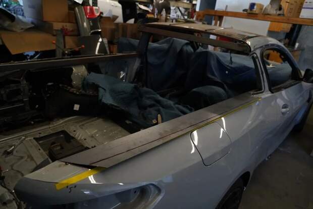 Купленный в апреле 2022 года новым автомобиль попал в руки ателье DinMann, которое к ноябрю превратило купе в стильный пикап. Доработки включают в себя трансформацию кузова отрезали заднюю часть кузова, заменив её новым стальным грузовым отсеком, задний борт которого сделан из крышки багажника купе.