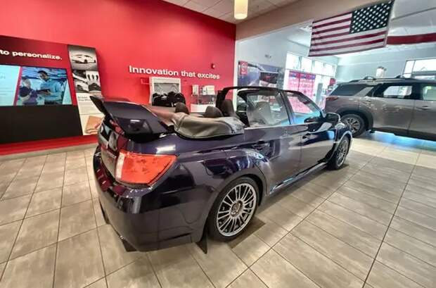 В американском штате Нью-Гемпшир выставили на продажу необычный Subaru WRX STI 2011 года, подготовленный компанией Newport Specialty Cars в Калифорнии. Главной особенностью автомобиля является откидной верх. Фирма разработала всего пять подобных кабриолетов. На этот раз приобрести редчайшую модификацию автомобиля с пробегом около 18 000 километров можно за 59 980 долларов (примерно 3,6 миллиона рублей по текущему курсу).