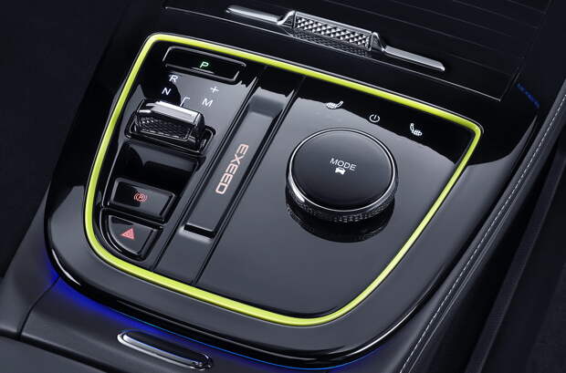 Интерьер у Exeed LX 400T совсем не такой, как у «младших» кроссоверов с турбомоторами 1.5 и 1.6. Приметы глядущего рестайлинга — новый руль, передняя панель с трапецевидными экранами информационно-развлекательного комплекса и иные дверные карты. Сенсорный блок климат-контроля с шайбами а-ля Jaguar Land Rover остался в прошлом; теперь для настроек можно использовать шайбу на центральном тоннеле.