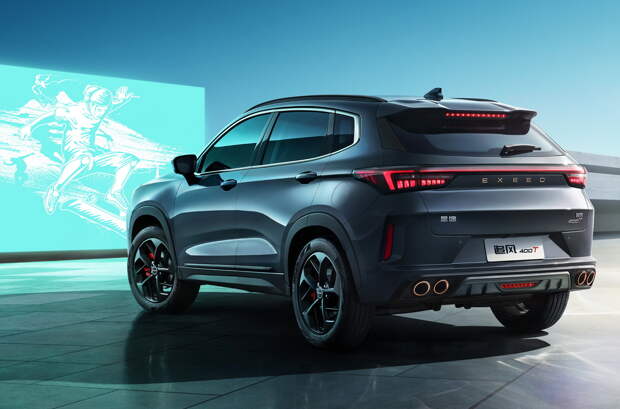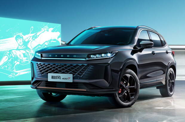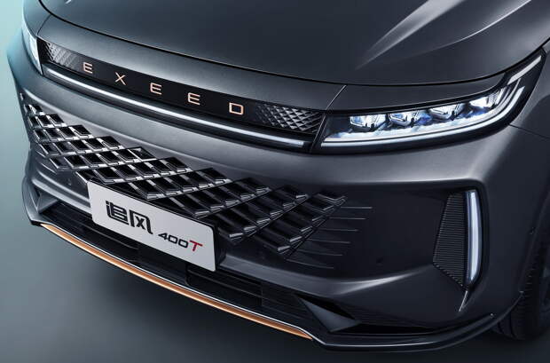 Дебют Exeed LX 400T предвосхищает плановый рестайлинг всего семейства компактных кроссоверов. Антрацитовые 19-дюймовые колёсные диски, красные тормозные суппорты и бронзовая пара двустволок выхлопа наверняка останутся прерогативой топ-версии, а вот безрамочная радиаторная решётка должна украсить все обновлённые «эл-иксы».