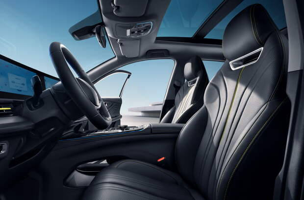 Ещё Exeed обещает, что быстродействие медиасистемы улучшилось в три раза за счёт нового процессора. Вентилируемые кресла с интегрированными подголовниками и яркой прострочкой — особенность спортверсии.